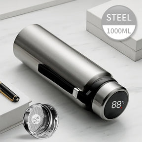Stainless Steel Thermal Water Bottle – LED Temperature Display Thermos | Vacuum Insulated Tumbler for Hot & Cold Drinks - Silver / 1000ml is backordered and will ship as soon as it is back in stock.